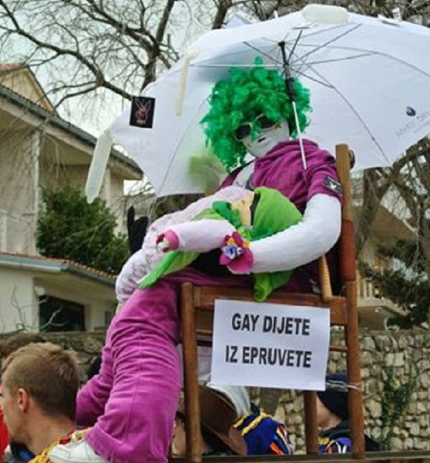 Naime poruka je jasna – Hrvatska se ”narodna milost” odnosno njezina predstava hoće odlikovati Hrvatom i Hrvaticom, pravim potentnim mužem i plodnom ženom, onom koja voli kurac i želi svoju djecu dobiti baš kurcem a ne nekakvim epruvetama i pokusima, i koja također zazire od ”provokacija” istog spola jer je već samo postojanje nekakvih ”gay majki” smeta, ali i budi nepočudne asocijacije. Uostalom, nije zajebancija pisati o tome jer je u Omišu kao Mesopust spaljena lutka novinara Slobodne Dalmacije kolege Vinka Vukovića. Taj karnevalski žrtveni jarac nije doduše pisao o seksualnim navikama u Hrvata, kvaliteti sperme i Željki Markić, već je razotkrivao korupcijske afere pa je ”narod” mudro zaključio da je i to neželjeno u našem društvu. U pravilu kmetovi uvijek brane leno feudalca na kojem živi, pa makar to bilo i za karnevala,
