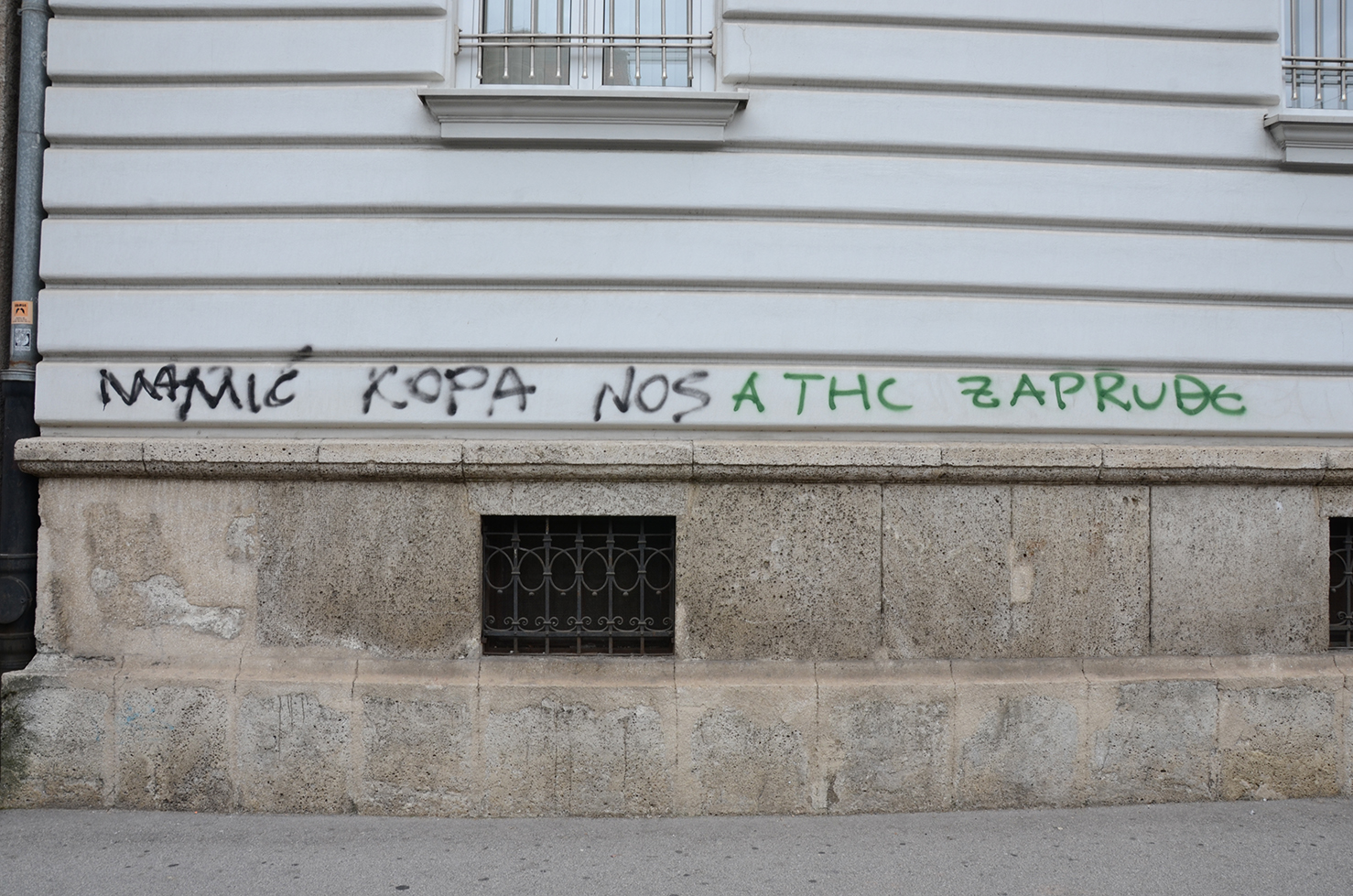 Sadržajno je okosnica ovih fotografija svima poznato ime, ono je objedinjavajući faktor, svojevrstan zajednički nazivnik. No kao u slučaju nekih matematičkih operacija zajednički nazivnik se može izostaviti, postaje nevažan, a značajno je sve drugo oko njega. “Zajednički nazivnik” je tu, prisutan, vidljiv, ali sam po sebi ne zaslužuje pažnju. Važno je ono što se oko njega kovitla. Fotograf na taj način iskazuje svoj stav. Okrećući objektiv prema madmaxovskim ambijentima kao pod povećalom izdvaja već danas prisutnu postapokaliptičnu atmosferu podcrtanu nedostatkom ljudskih figura. Nedostatak ljudi ukazuje na pomanjkanje uljuđenosti onih koji na taj način iskazuju da nisu usvojili razinu političke i svake druge korektnosti, ali upozorava na njihovo postojanje i težnju da se – kad već postoje – nekako oglase. Gradski zidovi postaju poligon za primordijalne krikove onih čija pismenost nije dorasla ni komentarima na Facebooku. S druge strane, među njima su i natpisi za koje je očigledno potrebna priprema, tehnički pribor (šablone) i svime time iskazana namjera i dostignuta mogućnost da se više prošire ukazuju na organiziranost koja iskorištava snagu elementarnih motiva i nagona. Društvene snage na djelu su antidruštvene da bi se obračunale s junakom koji je antijunak, pa kroz grafite izranja dijalektika sukobljenih strana koja je sve drugo nego jednostavna.
