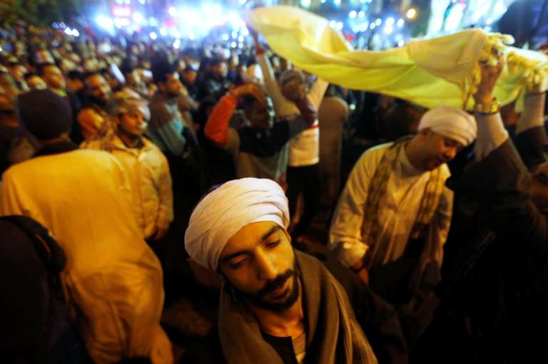 Egyptian Sufi Muslims practice ritualized Zikr (invocation) to celebrate “Mawlid al-Nabawi” or the birth of Prophet Mohammad outside the Al-Hussein mosque in old Cairo, Egypt, December 1, 2017. REUTERS/Amr Abdallah Dalsh