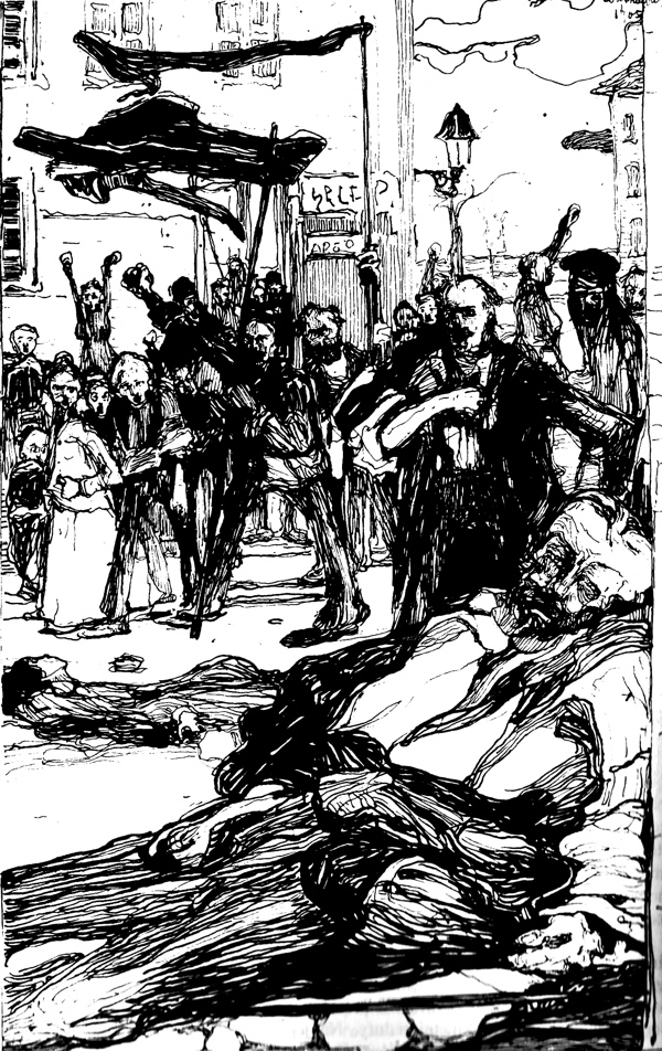 – Janoš se moli u crkvi. Mračno je. Janika, sin Balaža, doveo je svog sina Tošu da se pomole za spas duša mrtvih.