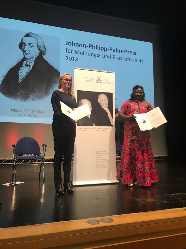 Nagrada nosi ime po Johanu Philippu Palmu, njemačkom književnom izdavaču i borcu za slobodu koji ubijen početkom 19. stoljeća tokom Napoleonovih osvajanja po direktnoj naredbi francuskog vojskovođe Napoleona Bonaparte. Nagradu je uručio: Prof. Dr. Ulrich Palm