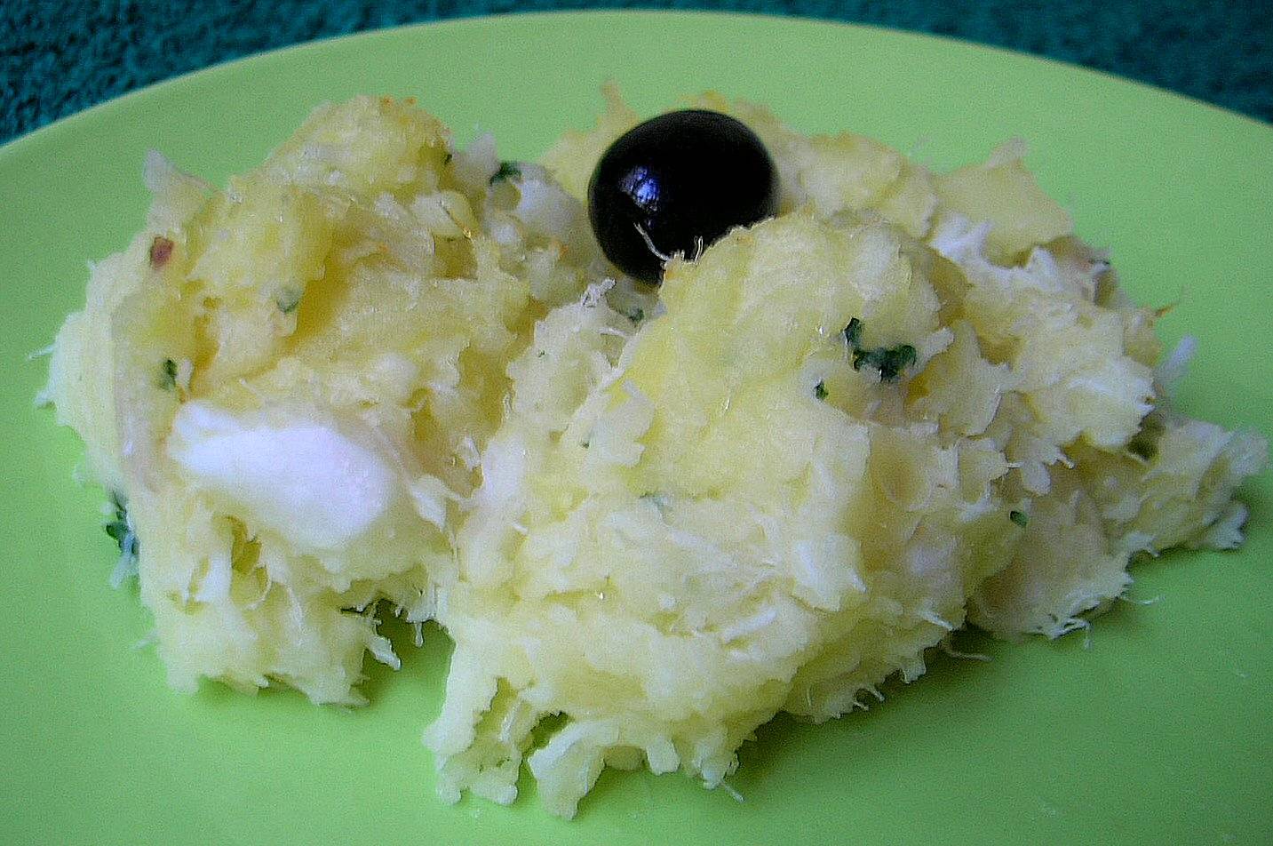 POSTUPAK: Umjesto svježe ribe možete, dakako, upotrijebiti i preko noći namočeni suhi bakalar. Ako je riba svježa, jako je posolite i ostavite da malo odstoji. Dalje postupajte jednako sa svježim i namočenim i drvenim batom oprezno natučnim bakalarom.