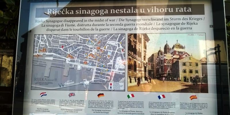Sloboda.hr se poziva na portal rijekadanas.com, nastao povodom obilježavanja Dana holokausta i postavljanja informativnog panoa na mjestu bivše sinagoge: Naime, na upravo postavljenom informativnom panou na šest jezika istaknut je netočan podatak prema kojem je sinagoga ‘minirana i nestala’ 1944. godine iako je povijesna istina kako je to učinjeno pune četiri godine kasnije. Srušili su je partizani 1948. godine.