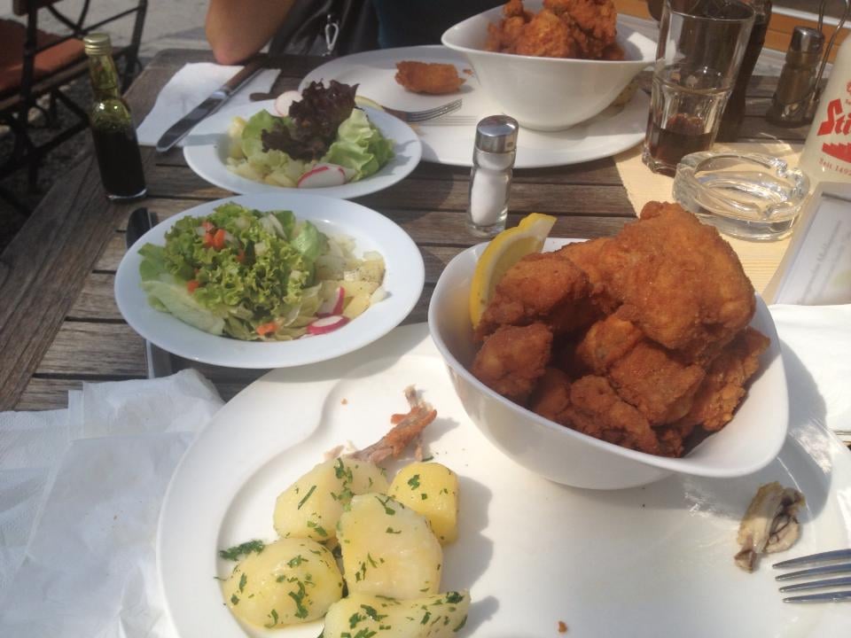 Tradicionalno se servira s krumpirom kuhanim u slanoj vodi, uvaljanim u nasjeckani peršin, te jedinom salatom s imenom i prezimenom…Matom Vilacem (ili miješanom)