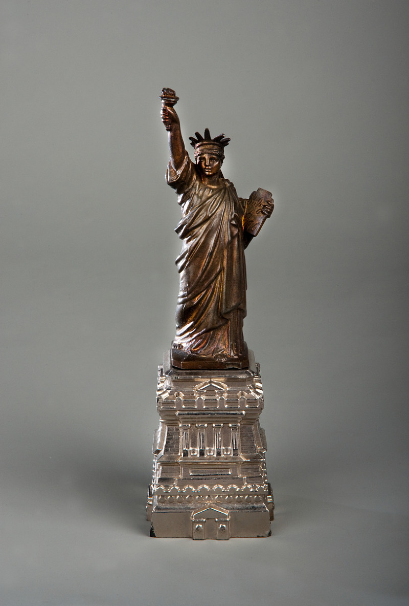 Zlatni kipić slobode našao je mjesto u vitrini odmah uz venecijansku gondolu, kičastu kutiju od slijepljenih školjaka, malu maketu kosog tornja u Pisi, i porculanske servise, među ikonama građanskih suvenira toga vremena.,Tamo je stajao godinama.